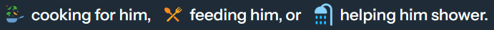Other times, it was chopping and carrying wood to the fire or even laying next to him in bed to help keep him warm.